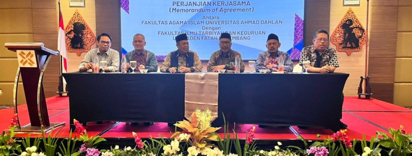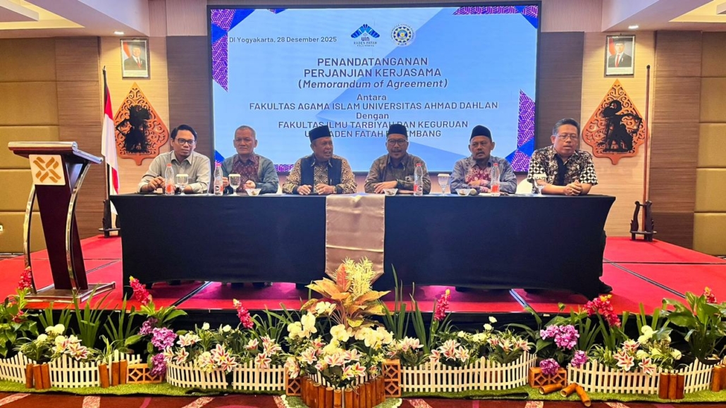 FAI NEWS — Fakultas Agama Islam (FAI) Universitas Ahmad Dahlan (UAD) menjalin kerja sama kelembagaan dengan Fakultas Tarbiyah dan Ilmu Keguruan (FITK) UIN Raden Fatah Palembang melalui penandatanganan Nota Kesepahaman (MoU). Kegiatan ini diselenggarakan di Hotel Platinum Yogyakarta pada Jumat, 27 Desember 2025.